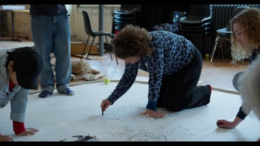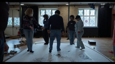 Central to the development of the exhibition were five "open for all" workshops at the University of Kent and ARK Cliftonville in Margate. During these sessions, participants engaged in physical theatre and puppet building workshops, exploring a spectrum of the complex and emotional journey of refugees through five key phases: Displacement, Flight, Arrival, Detention, and Integration, through movements. These feelings were mapped out on paper and physically navigated using the handmade puppets, which are now integrated into the gallery display.