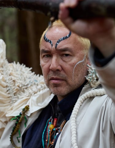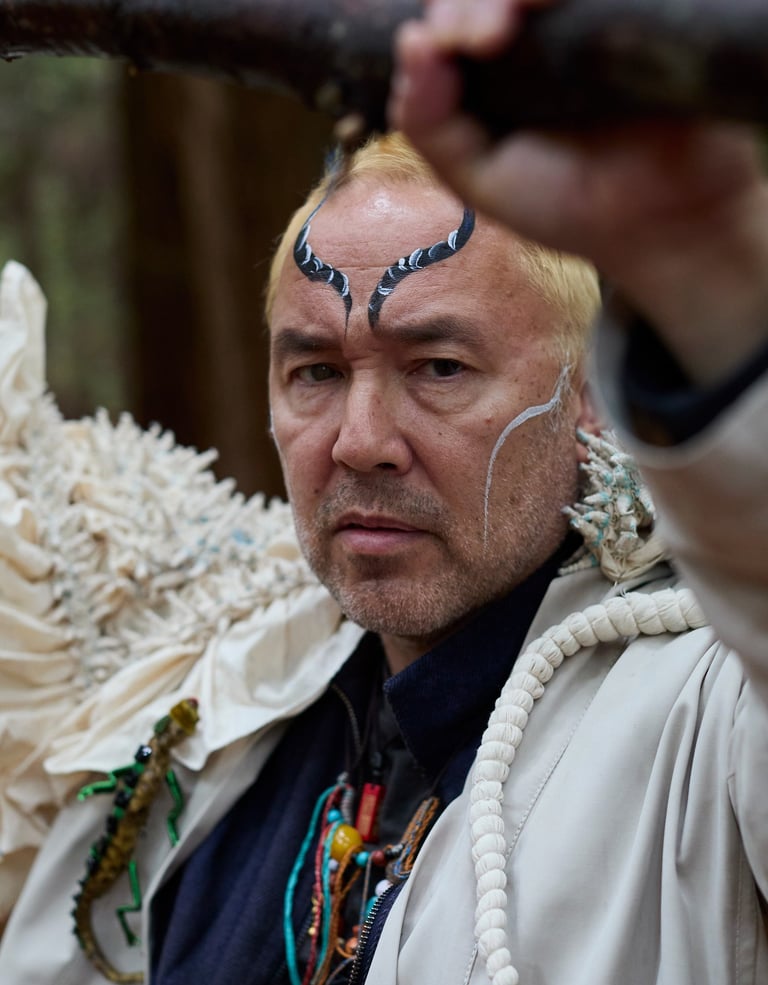 I asked each collaborator to think of a creature or myth from their own culture that resonated with them. Their roles grew from these conversations. Then I selected original Mountains and Seas creatures to shape their styling and presence. All my collaborators are writers, producers, directors — artists with deep histories of practice. So the creature they embody must honour the traditional text and reflect their own spirit, body, and artistic lineage. When you watch the play and then read their descriptions, you can feel how each creature becomes uniquely theirs.