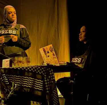 Part documentary, part theatre, and part collective reflection, the piece invites its audience into the everyday reality of Gaza under constant drone surveillance, its sounds, silences, fears, and routines. Employing the form of a war diary, it weaves together archival footage, live oud music, and audience interaction, all grounded in one repeated reminder: “we are not actors, we are journalists.”