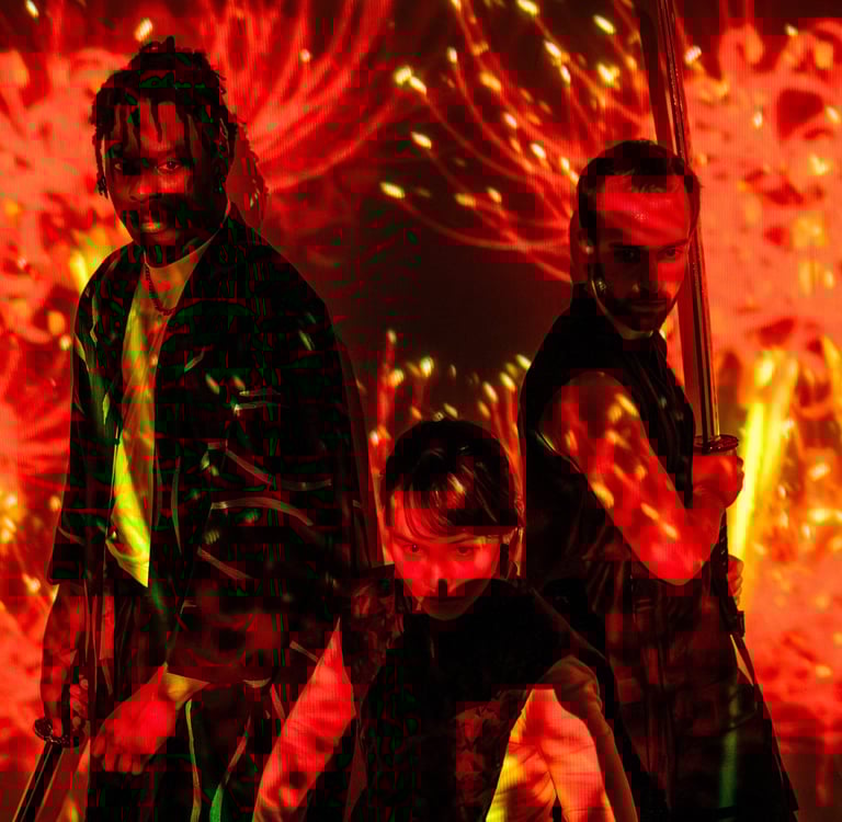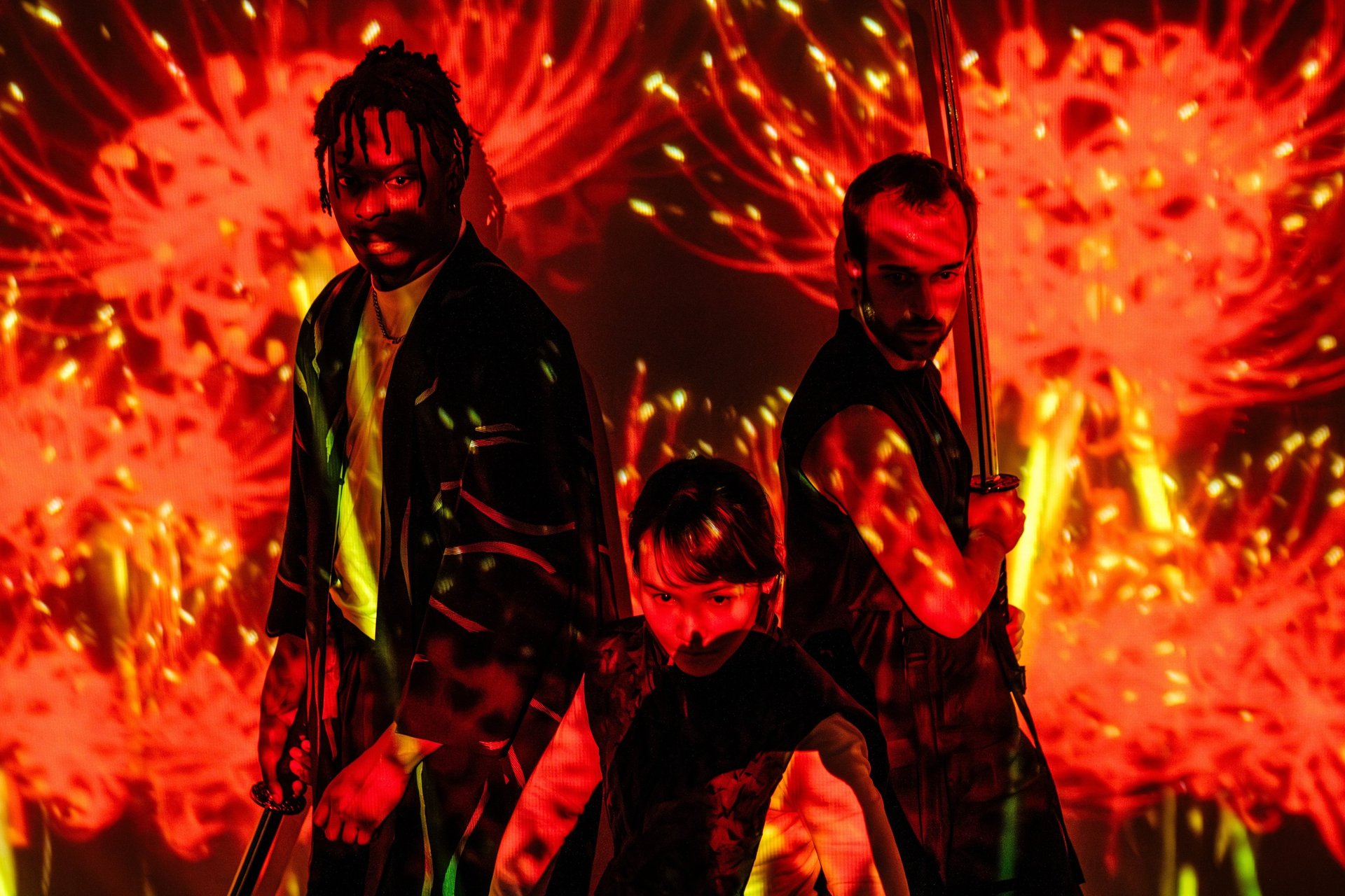 The starting point for RONiN is unusually concrete. During lockdown, Yukiko Masui met Kashmir Leese in a park and began studying the sword under his guidance, and that discipline feeds directly into the movement language on stage. This is not a decorative nod to martial arts. It sits in the body, shaping timing, control and intent. Masui’s training in hip hop, ballroom and Latin dance remains visible, but here it is channelled into something more focused.