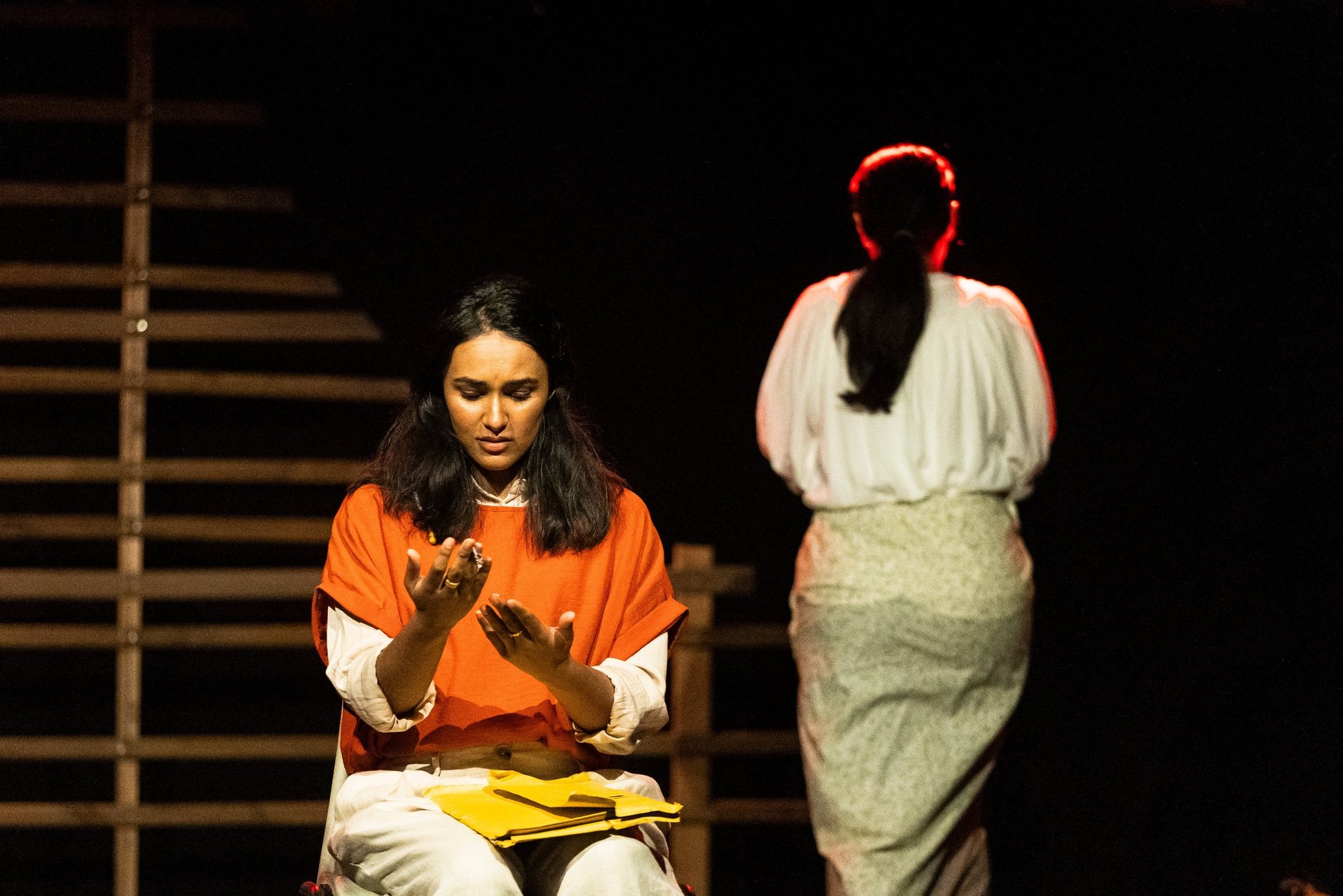 Director Niloo-Far Khan demonstrates a strong grasp of the story’s background and manages the stage dynamics well. The story begins with a long red thread connecting the four main characters—only to be cut apart piece by piece, and finally tied together again. The recurring image of the rope suggests connection, but its exact meaning might have benefitted from a clearer definition.