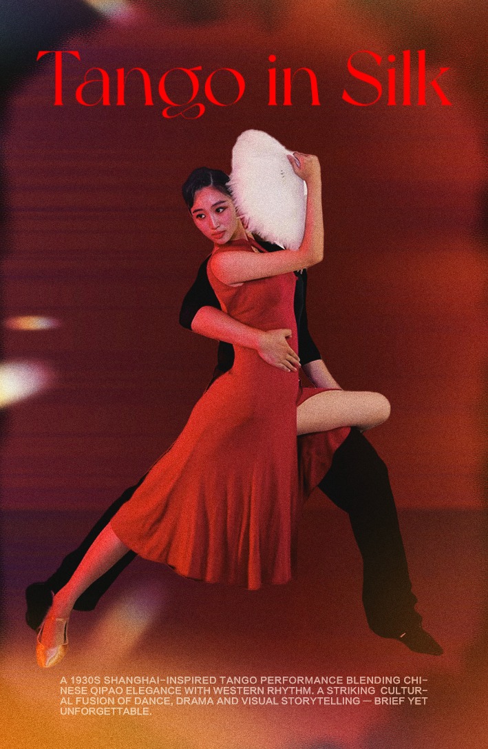 Set to a dynamic, emotionally textured soundtrack, Tango in Silk follows the journey of an East Asian woman newly arrived in the UK. Her dance begins with quiet uncertainty — hesitant gestures, reserved steps — and gradually builds into confident, grounded movement. The choreography embodies moments of cultural friction, resistance, and ultimately, empowerment. In a striking finale, the character’s physicality fuses the bold rhythm of tango with the softness and dignity of traditional Chinese grace, symbolized by her dramatic qipao (cheongsam) costume.